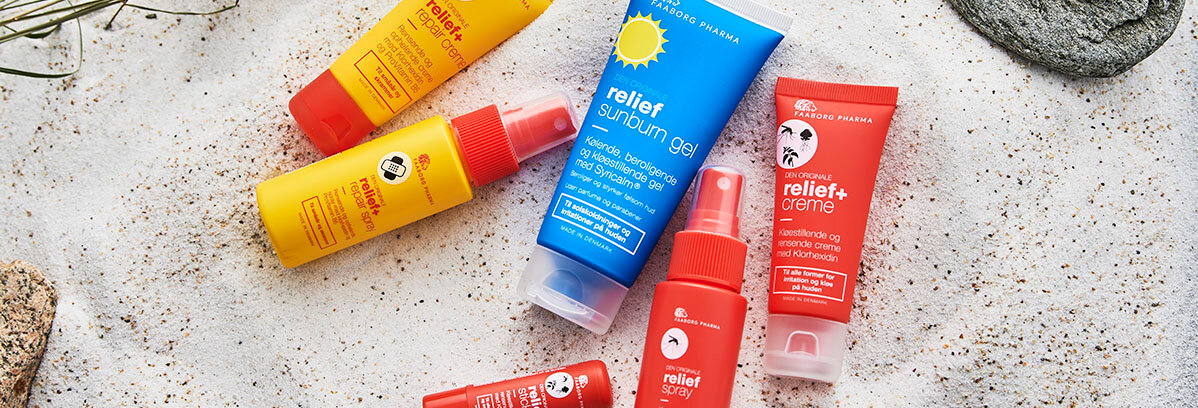 Faaborg Pharmas Relief+ serie omfatter er en række førstehjælpsprodukter.